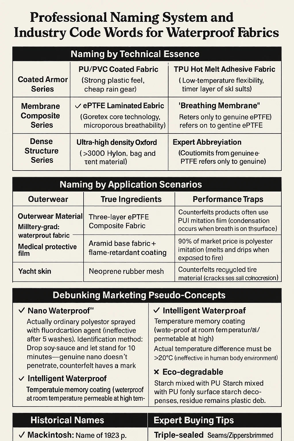 سیستم نامگذاری حرفه ای و کلمات کد صنعت برای پارچه های ضد آب