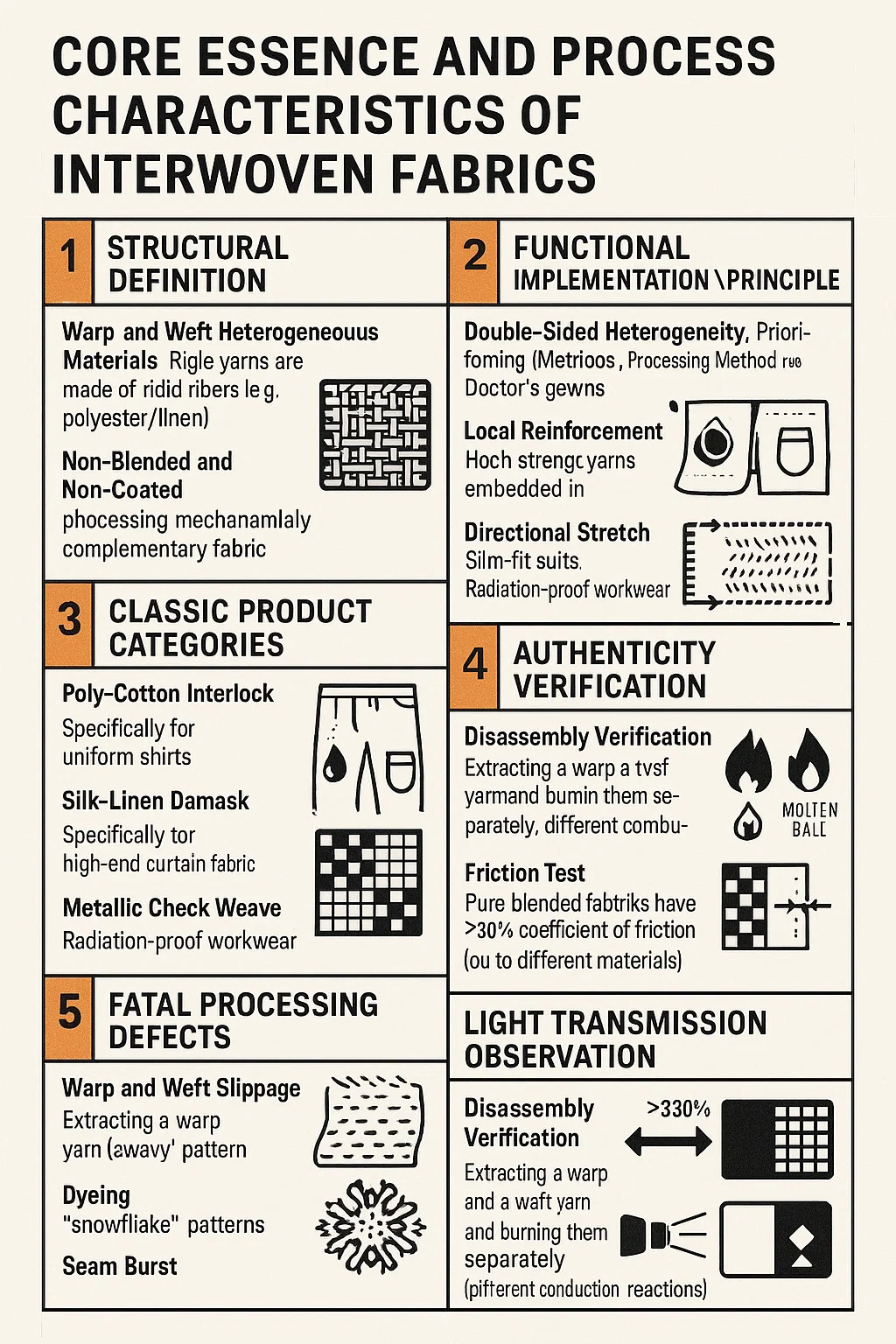 تأیید جداسازی مونتاژ: یک نخ تار و یک نخ پود را استخراج کنید و آنها را جداگانه بسوزانید - پارچههای درهم تنیده معتبر واکنشهای احتراق متفاوتی را نشان میدهند (مانند خاکستر پود پنبهای / توپهای مذاب تار پلی استر).